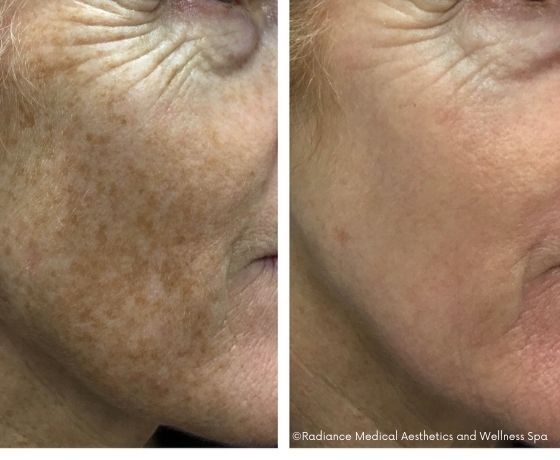 Benign pigmented lesions can present in many different ways such as melanocytes, seborrheic keratosis, freckles, birthmarks, and age spots. While they are benign (non-cancerous) and common, there are many times they are unwanted for cosmetic reasons. At Radiance, we can spot treat, and remove unwanted pigmented lesions with our gold-standard laser technology to reach your aesthetic goals. The laser vaporizes the skin tissue safely and effectively to remove pigmented spots.